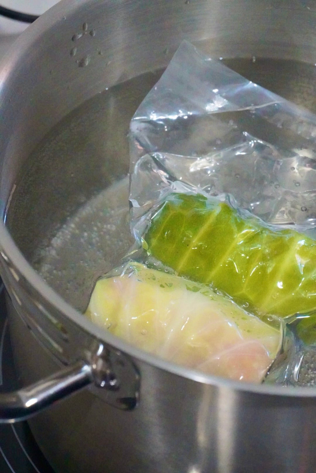 袋のまま、沸騰したお湯にいれ強火で湯煎22分。