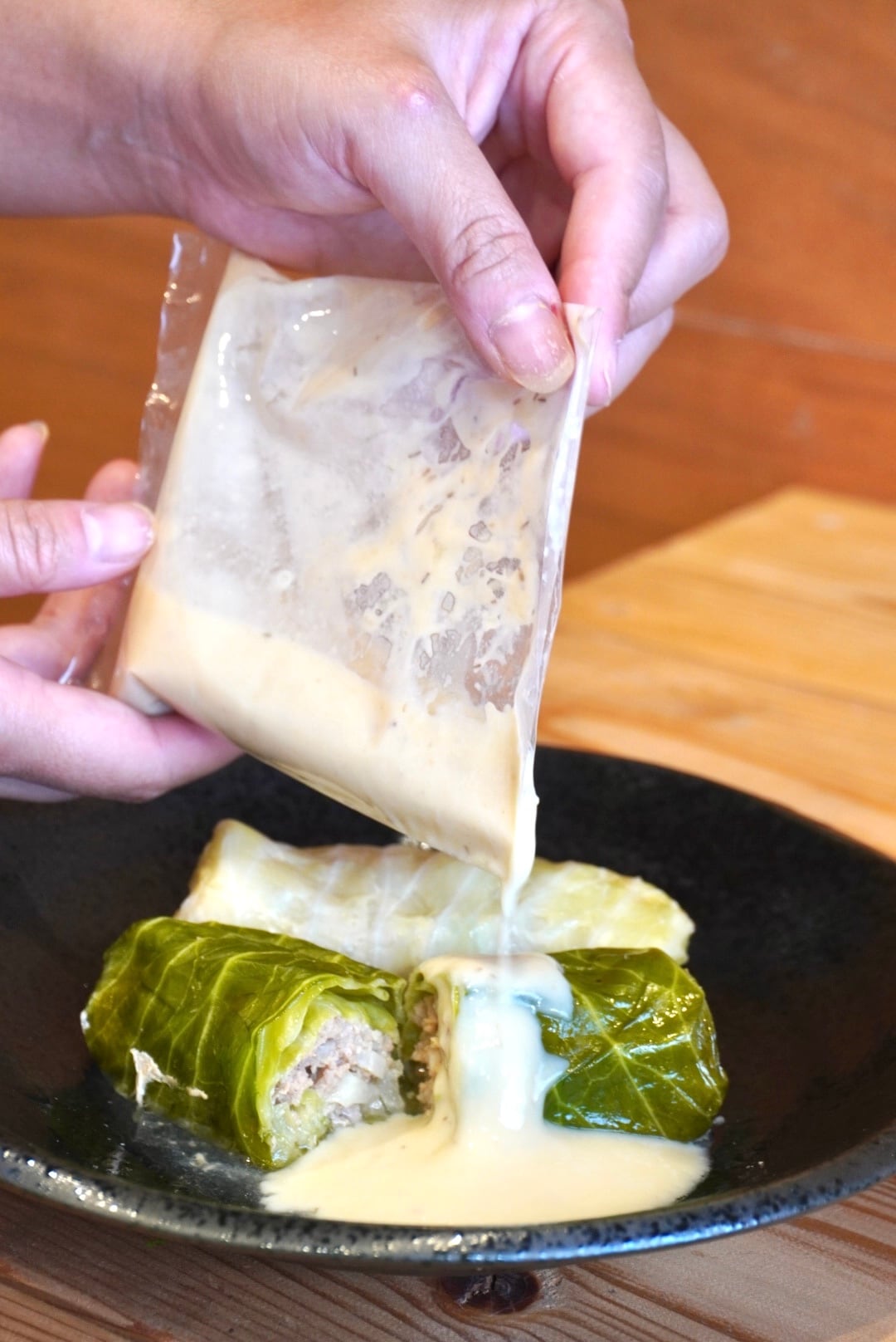 手間をかけて手づくり感を大切にした冷凍ロールキャベツは、キャベツの柔らかな葉にジューシーなミンチ肉と野菜をたっぷりと包み込んでいます。